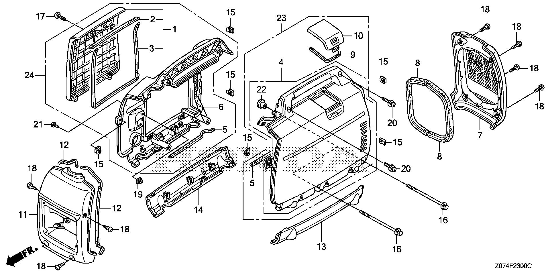 Generators EU EU2000 EU2000I AC EAAJ-1170001-9999999 FRONT COVER@SIDE COVER @REAR COVER - Trigreen Equipment